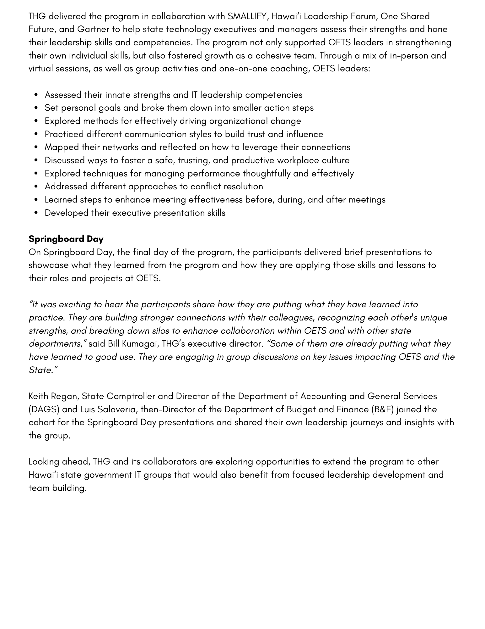 Equipping State Leaders of IT: THG Wraps Up IT Leadership Program with “Springboard Day”